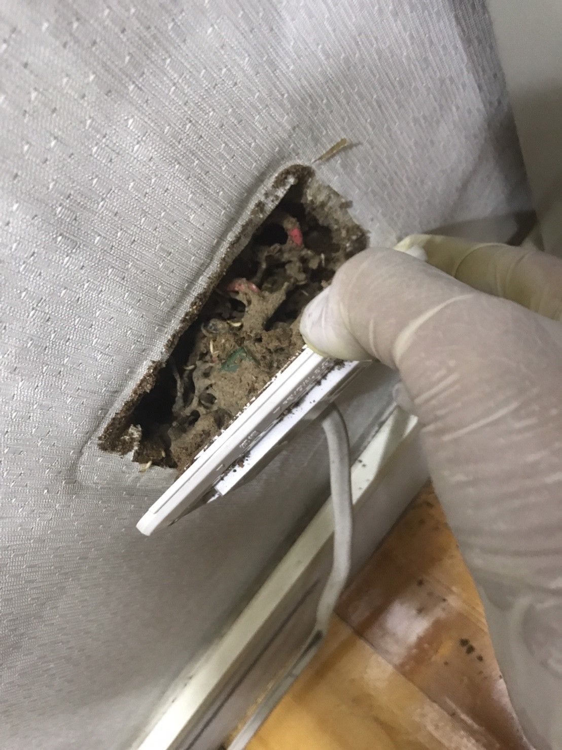 白蟻的蟻巢一般來說不會暴露在肉眼可見的地方,這個案例是師傅到現場發現的一個白蟻分巢,拆開後白蟻還是攻擊性很強,一般來說會攻擊人的屬於白蟻族群的兵蟻,除了白蟻會攻擊人之外,運氣好發現疑似蟻巢的時候也切忌不要破壞或驚擾。 我們在處理時會判斷白蟻移動的路徑,避免擴散到其他裝潢或房間,拆除的流程也需要一定的經驗以及使用對的工法。 很多客戶問我們,遇到白蟻是否拆除裝潢就可以讓他們根除? 其實有時候不對的處理順序有可能讓現場更糟糕...這需要了解現場情況以及已經處理的方式或後續如何規劃來安排處理順序,具體來說如果是室內已經有住人,但發現白蟻破壞裝潢,想要重新裝修。 如果是以上的狀況會建議直接聯繫我們,我們會詢問您現場狀況後給予傷害性最小及有效根除的流程